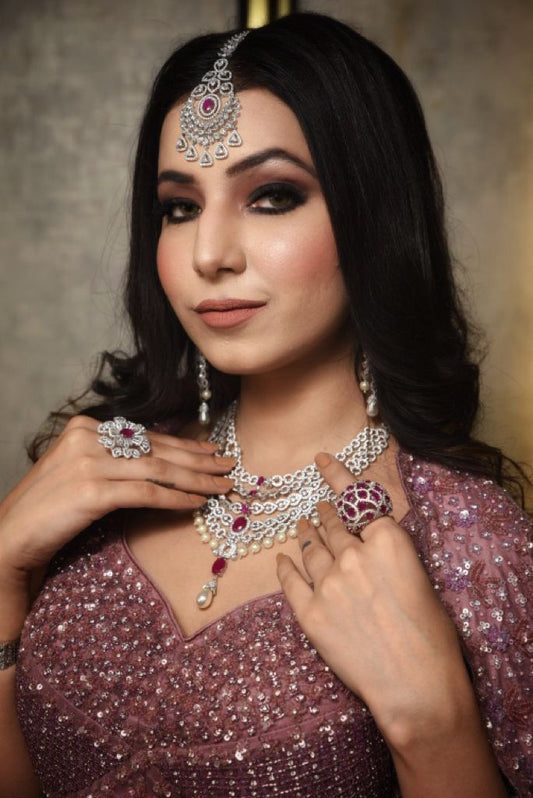 Adah Diamond and Ruby studded maangtikka