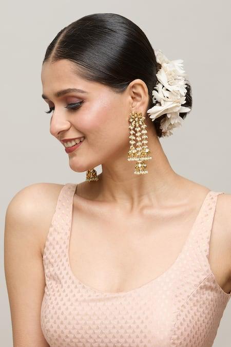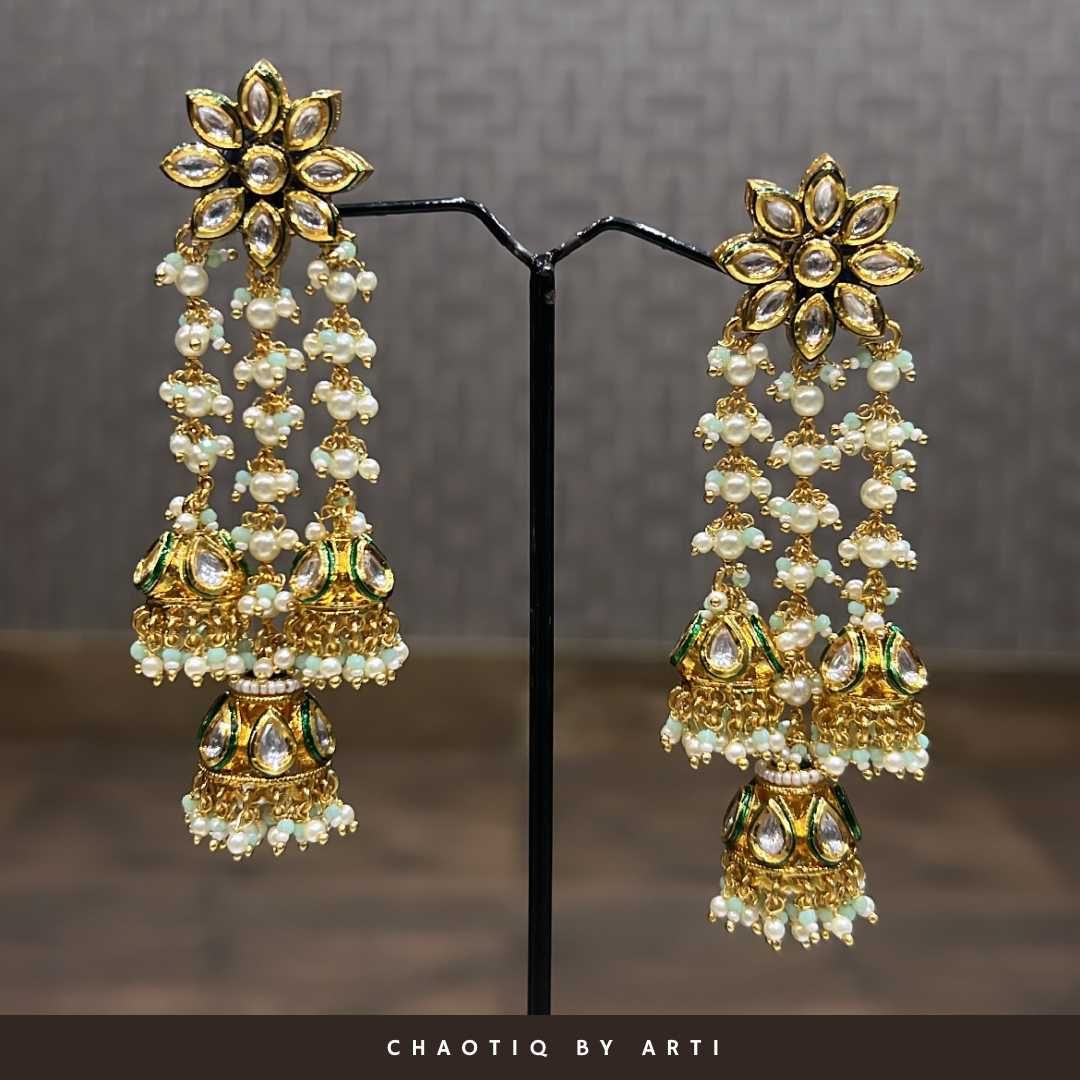Flower shaped polki pearl tassels